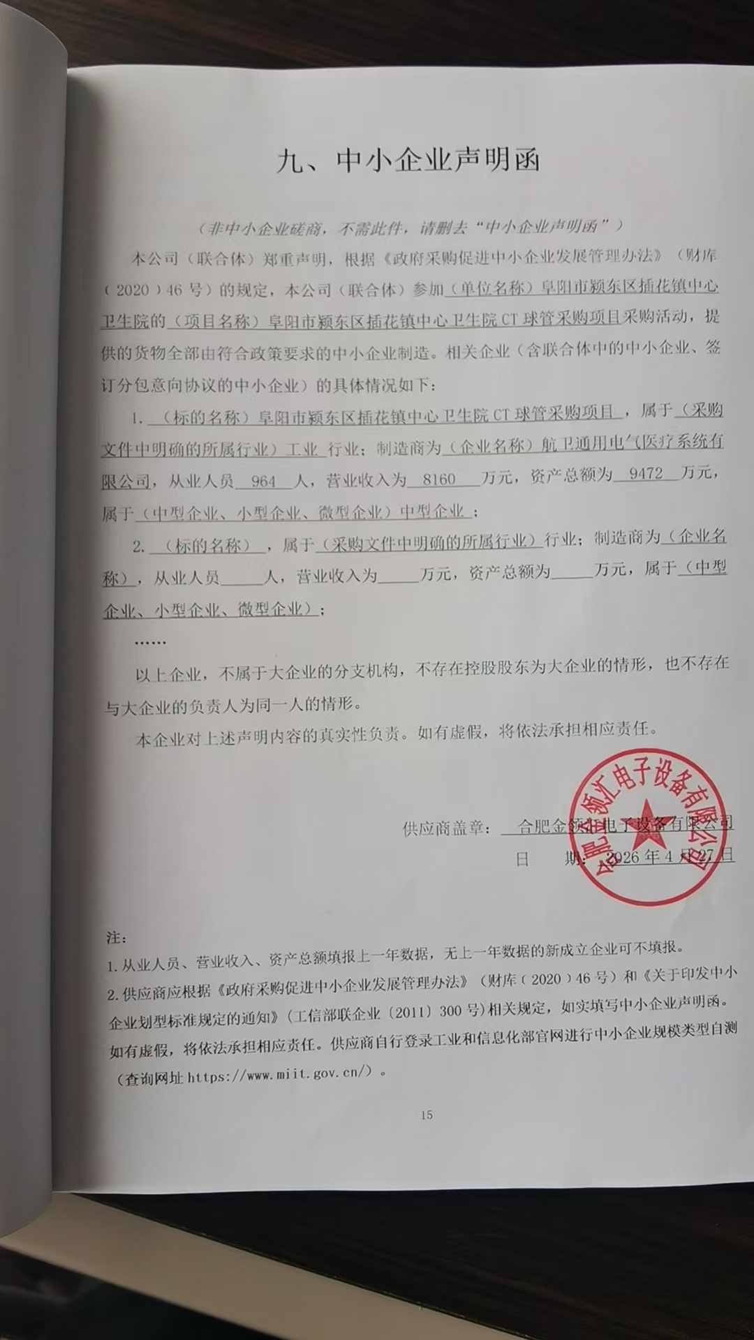 中小企业声明函