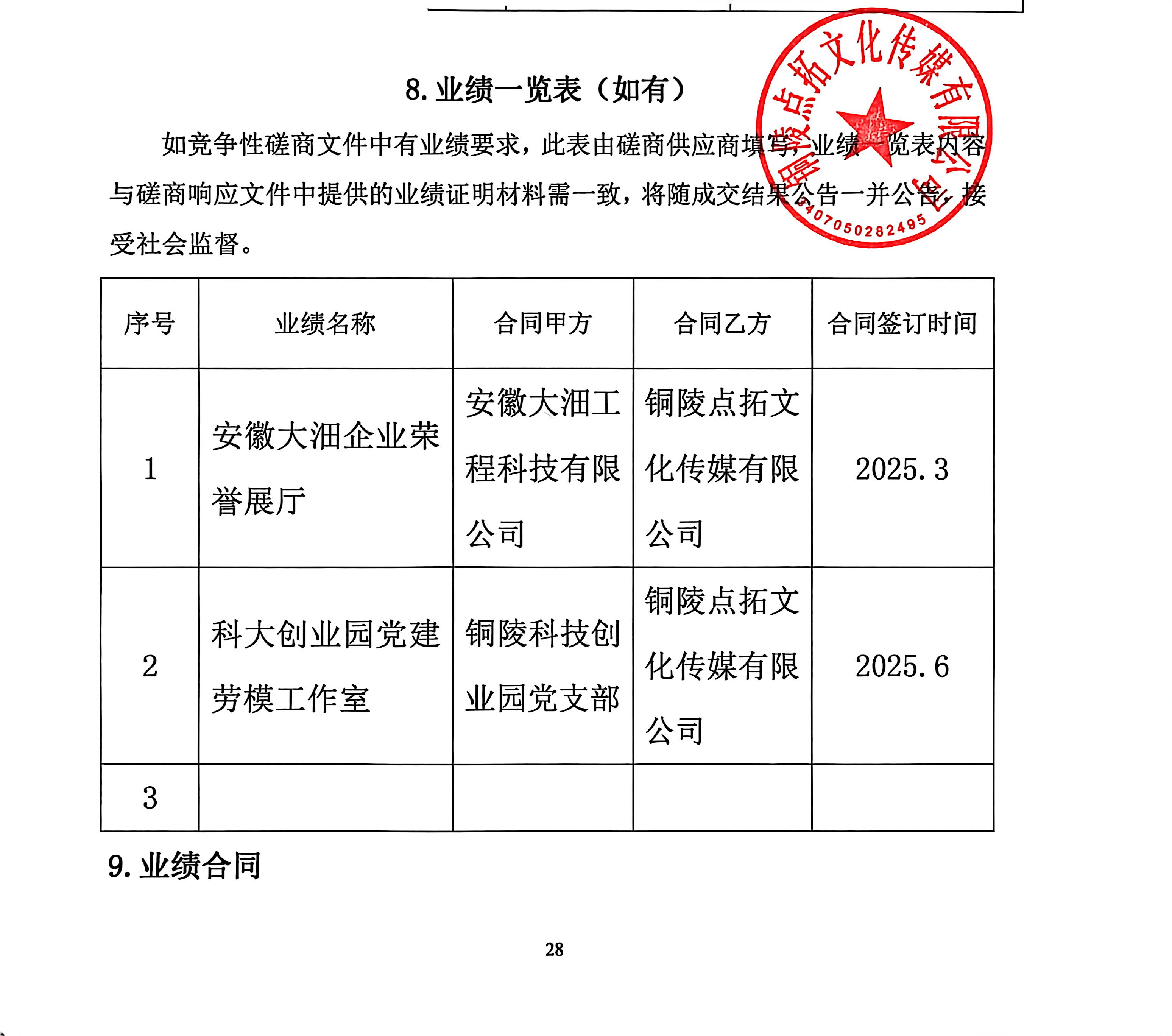 1  | 安徽大沺企业荣誉展厅  | 安徽大沺工程科技有限公司  | 铜陵点拓文化传媒有限公司  | 2025.3  |